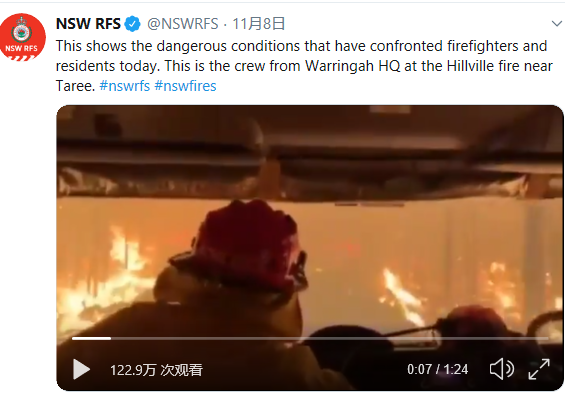 资料显示,新州郊区火灾管理局是世界上最大的消防机构,于1997年根据《澳大利亚郊区火灾法案》(Rural Fires Act 1997)建立。该局目前拥有员工900人,注册志愿者72000人。但在极端天气面前,消防队员们也显得束手无策。