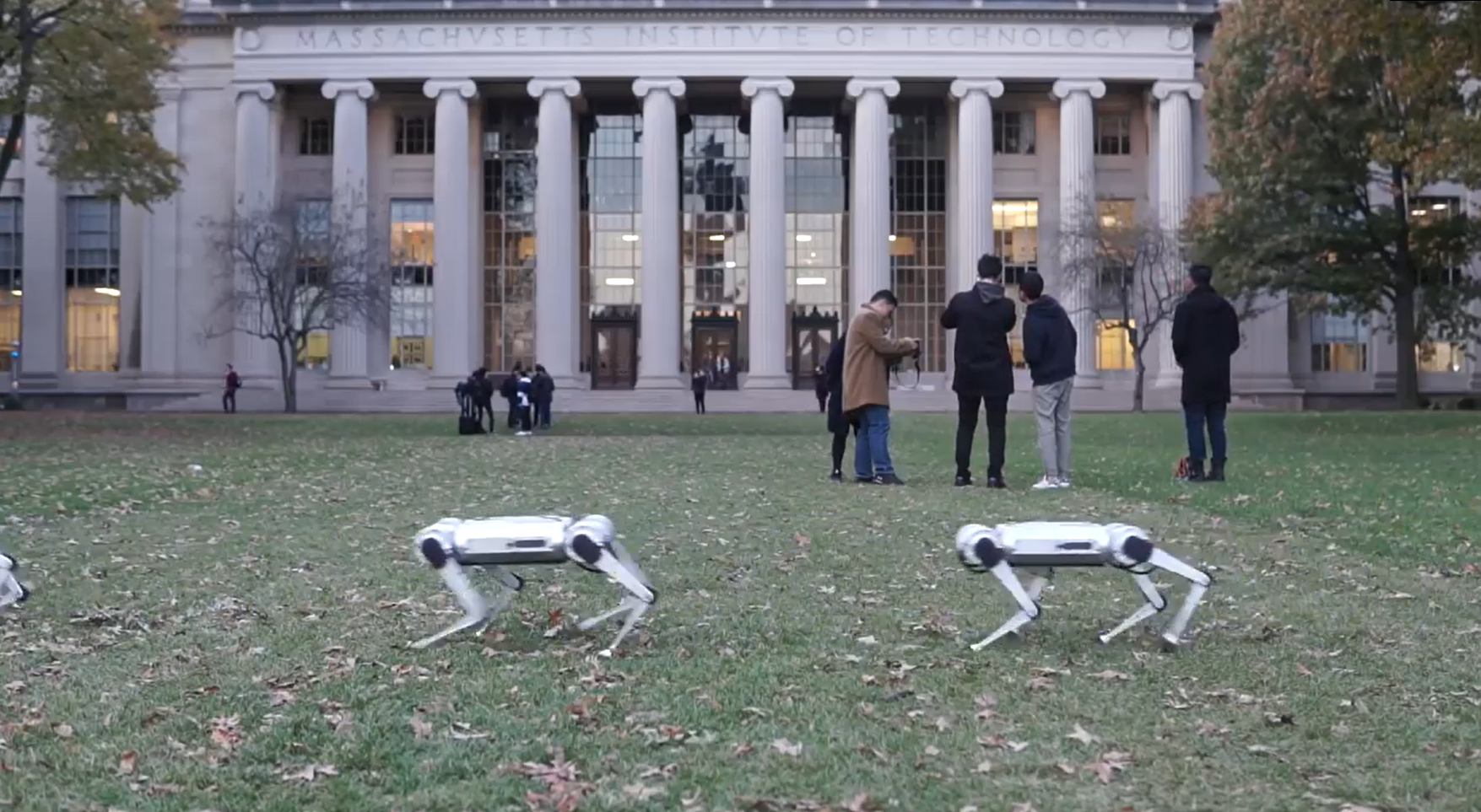 日前,麻省理工学院公布了一段全新的视频,九台四足机器人快速行进,在草地上打滚摇晃,小幅跳跃前进,俨然是一群可爱的宠物狗。