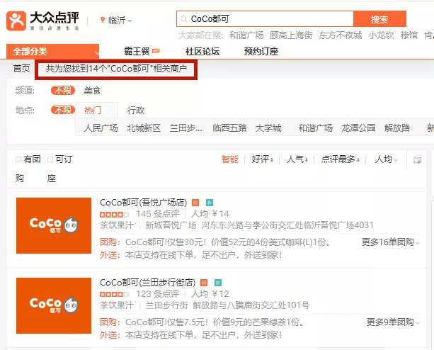 CoCo等品牌移军下沉市场,图片截自大众点评