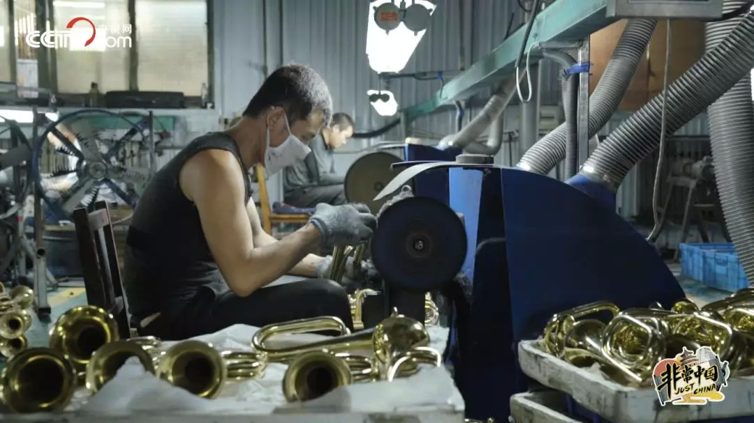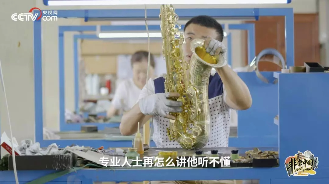 工人们并不会吹奏自己制作的乐器,不识乐谱,也没有鉴赏能力,只是按照图纸和规定步骤去完成机械化的生产。他们也不知道这些乐器会运去哪个国家,只是有时在电视上看到萨克斯的时候会想:这是什么型号的,有没有可能是自己做的。