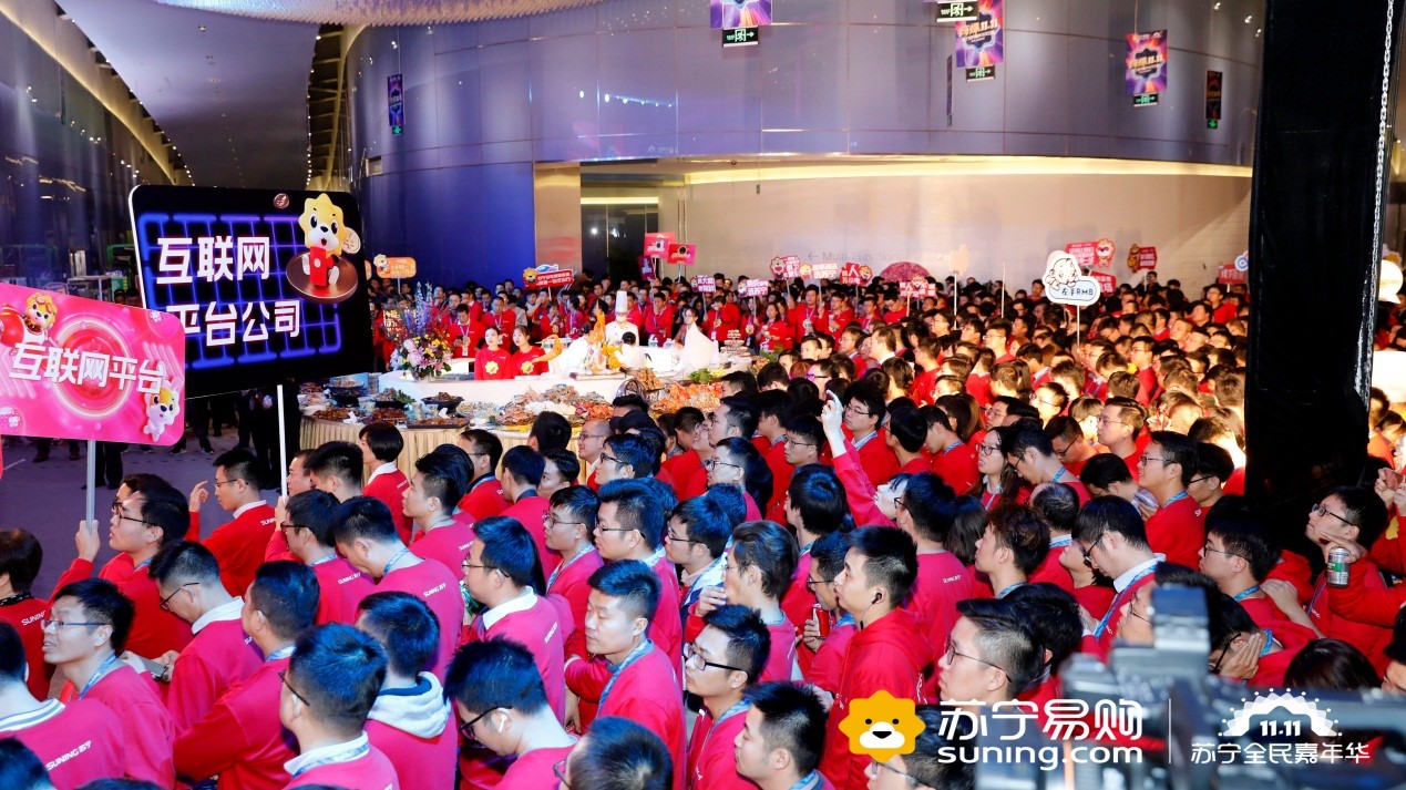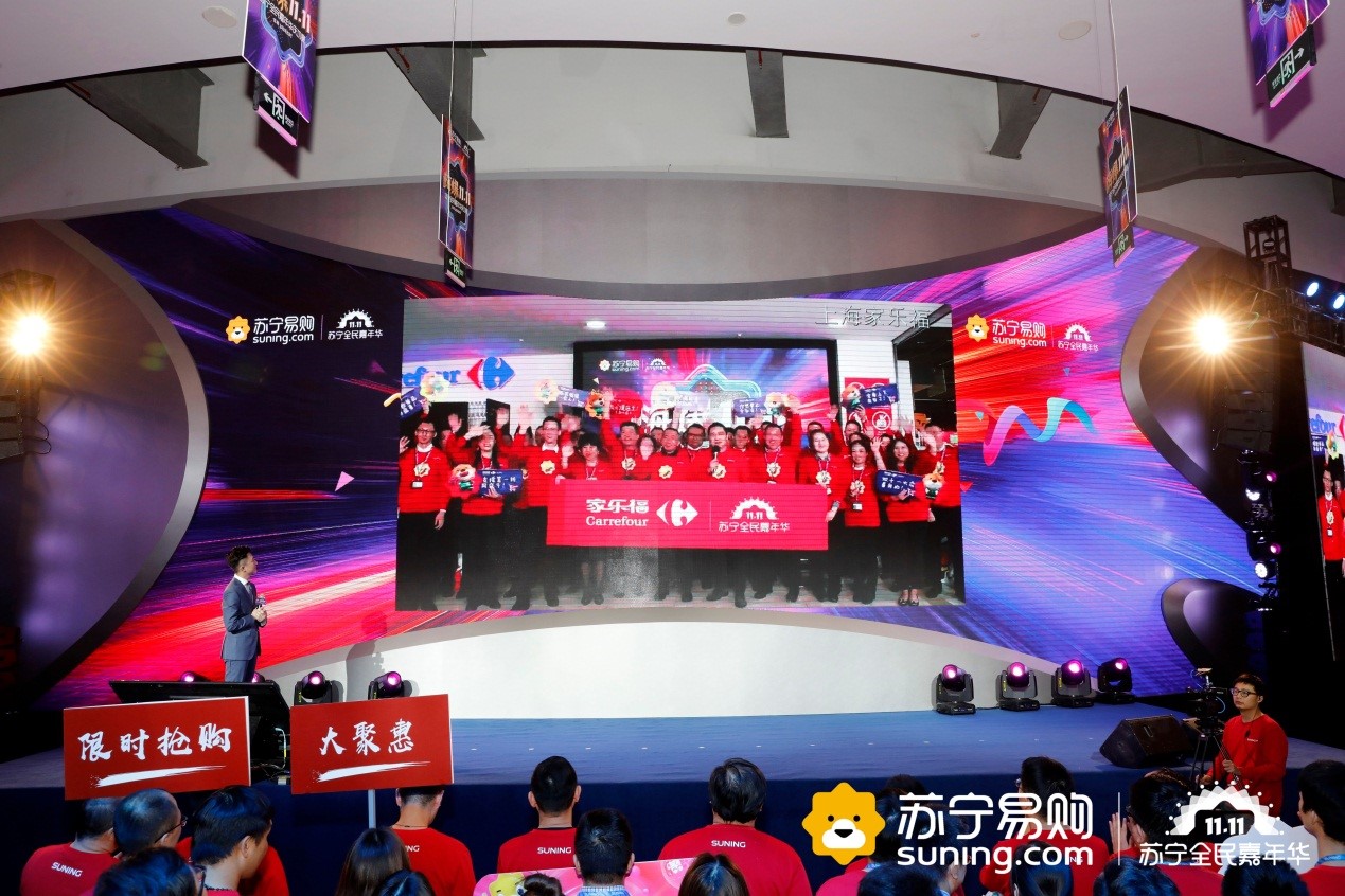除了南京总部,苏宁各大区也准备了庆功宴,还与总部进行了视频连线。首次参战双十一的家乐福在11月1-3日拿下了开门红,三天十个亿的目标提前完成。家乐福COO张其喆在上海古北店连线总部时说道:“双十一已经圆满收官,但家乐福的征程才刚刚开始,未来会再接再厉、再创佳绩。”