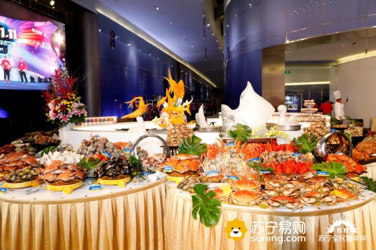 这次苏宁双十一庆功宴,各种高档海鲜唱大戏。大青蟹、大花蟹、梭子蟹、面包蟹、老虎蟹、帝王蟹……光螃蟹就有十几个品种;更有硕大无比的波士顿龙虾、海珍之冠的鲍鱼仔、新鲜肥美的阿拉加斯蟹腿等;加上生蚝、扇贝、三文鱼、大海螺、虾婆婆等,几乎集齐了市面上畅销的海鲜品种。员工大呼:“公司真的下血本了!”“一只波士顿龙虾就够我满足的了!”