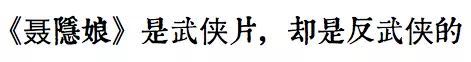 《聂隐娘》是武侠片,却是反武侠的,剧本修改三十余次,删除一切叙事冲突,没有曲折剧情,暴烈的厮杀打斗,甚至不太讲话,把空与远,静与清,枯与荣都留给视野里的自然之色、天籁之音,聂隐娘穿行与草木之间,几乎与草木无异。当她明白这个道理,放下手中凶器,就成陶潜笔下“不知有汉何论魏晋”那样的人,充盈于山水之间,不再为意义、指令、繁衍、人伦这些而活,内心自由了。