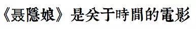 刺客聂隐娘常蛰伏于闹市王府周遭的大树、高楼,屏息凝视俯瞰众生,像鹰隼一样掐准时机扑下去,瞬息之间完成高难度的杀戮动作,这个时刻,只有忘记时间存在,才能实现人剑合一百发百中。退隐的聂隐娘发现了时间的循环无限,身边世界的微观之美,去苍茫里寻找不朽。也许参透了时间的存在,并和它融为一体才是长生不老之术,这是一个得道的人。