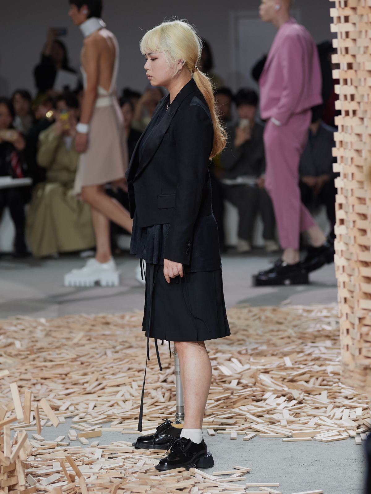 这种对完全回归真实的向往也体现在了大秀的结尾。以为装载着机械大腿的残疾人模特从后台走出,毫不留情地将精心搭建起来的多米诺骨牌城堡推到,以最决绝的态度否定了一切中立方案。