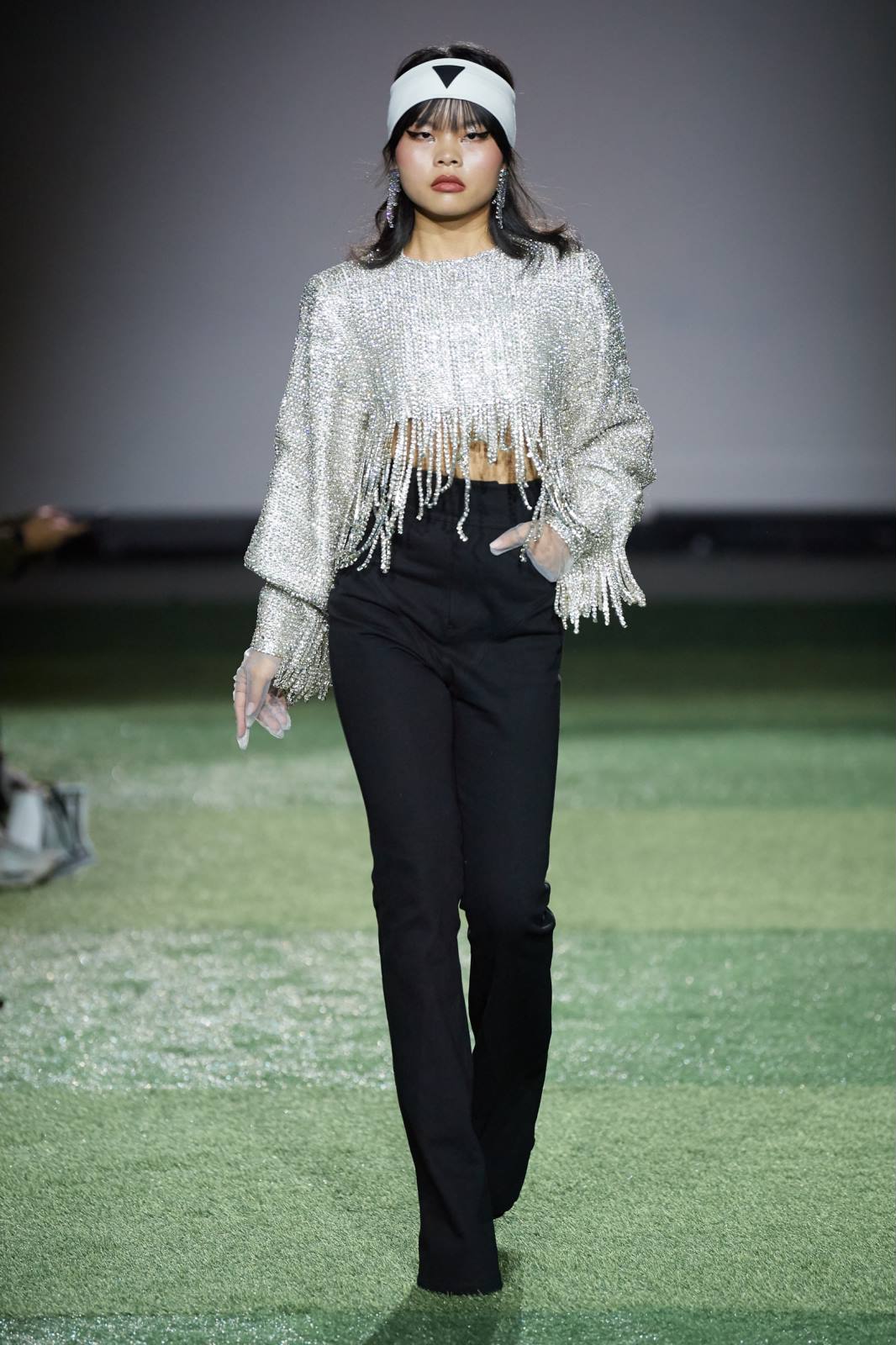 尝试让不同时代的女装进行对话,也是CHRIS BY CHRISTOPHER BU在2020春夏系列中值得关注的地方。装饰着飘逸银色流苏的宽大西装搭配了修长阔腿裤,是二十年代爵士乐俱乐部与八十年代迪斯科舞厅的融合;在印有漫画改造后《维纳斯的诞生》图案的宽松衬衫出场后,紧随而来的是一件修身黑色西装裙,让当代街头文化与六十年代经典风格无缝衔接。