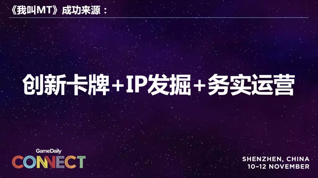 今天,在创梦天地和深圳市南山区文化广电旅游体育局联合主办的2019 GameDaily Connect全球游戏开发者大会上,乐动卓越SVP刘军以“我叫MT--从卡牌到MMP的成长之路”为题进行了分享,深度复盘了我叫MT系列的产品经历。