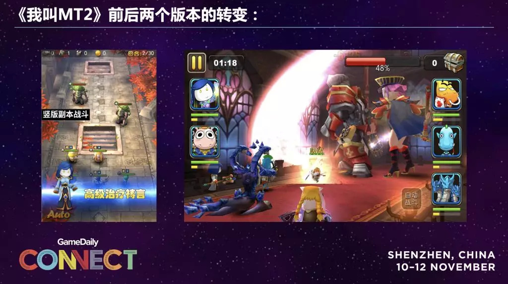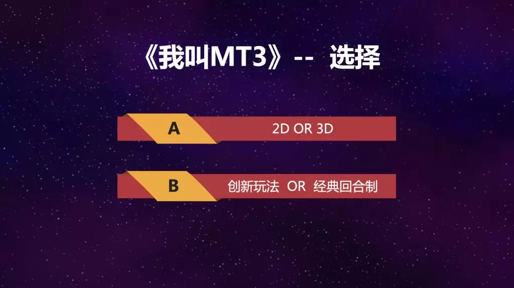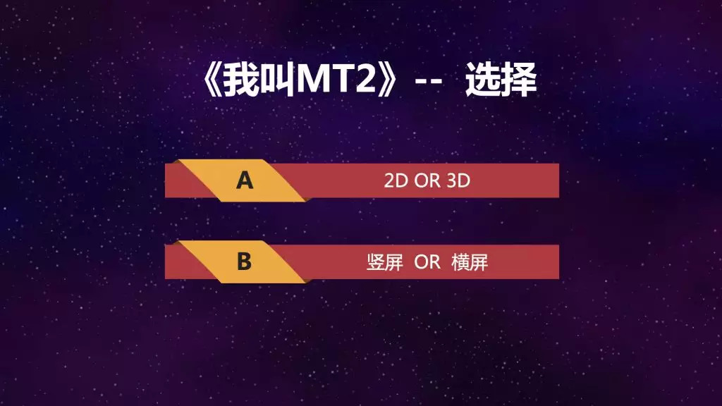 我们选择了2D。等于从MT2的3D变成了2D,为什么?因为我们选择的玩法不适合做3D。