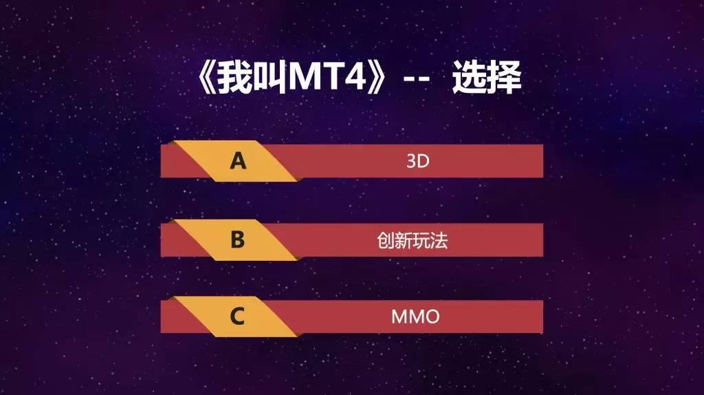 所以MT4在这种情况下做了很多职业,可以跟现在市面上任何MMO媲美,而且它的丰富搭配,包括教学成本都会低很多。