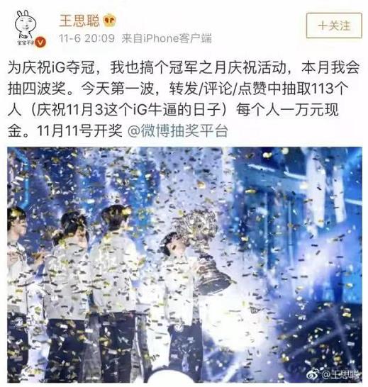 从2019年7月开始,王思聪持有的9家境内公司股权陆续被司法冻结,涉及游戏、体育、经纪演出、影视、音乐等多个子公司,遍布上海、天津、北京、大连等多地。由于IG俱乐部是独立运营,尚未受到冻结风波的影响,侥幸逃过一劫。
