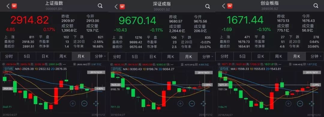 Wind数据显示,10月三大股指表现平平,上证指数月涨幅仅0.82%,深成指月涨幅2%,创业板指涨幅2.69%。