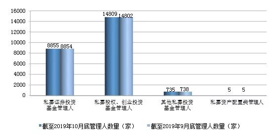 截至2019年10月底,在协会存续登记的私募基金管理人较上月增加5家至24404家,环比增长0.02%。不过与9月的31家增量相比,新增家数大幅减少。