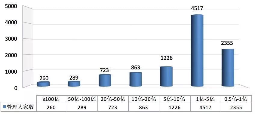 而规模在0.5亿到1亿元的微型私募减少5家至2355家。