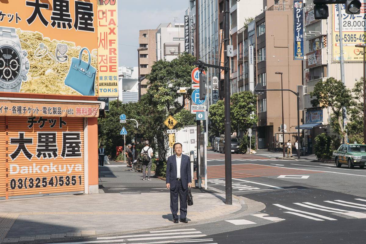 佐藤走路很快,穿过街巷,在武藏小金井站乘坐中央线,由西往东。列车里,上班族大多没睡醒,昏昏沉沉的打着瞌睡;佐藤却喜欢靠在车门边,看着车窗外尚未清醒的城市。经过一次换乘,一个小时的车程,佐藤在秋叶原站下车,穿过两道马路,步行去他的商店。