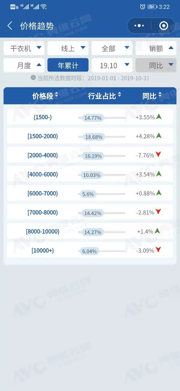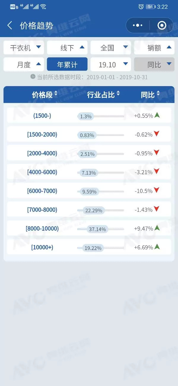 2019年1-10月干衣机产品价格趋势
