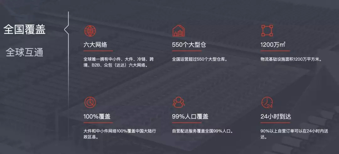 而根据京东物流官网披露的信息,目前,京东物流大件和中小件网络已实现大陆行政区县100%覆盖,自营配送服务覆盖了全国99%的人口,90%以上的自营订单可以在24小时内送达。