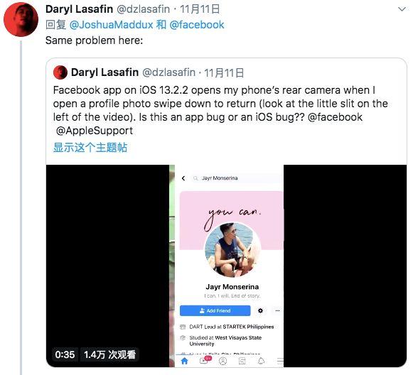 随后,不少网友跟帖表示他们也遇到同样的问题。肯纳安保公司的首席安全工程师杰里⋅甘布林发现了这个漏洞,不过他表示:“没有迹象表明这些数据实际上被传输给了脸书。”但他仍建议,在漏洞完全修复、App有可用更新之前,用户最好取消脸书的摄像头访问权限。