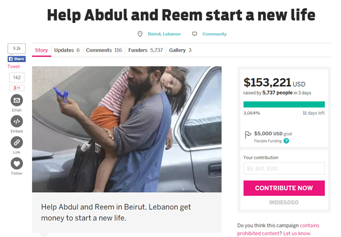 他还在indiegogo网站上发起了一项众筹,希望能改善Abdul和2个孩子的生活。