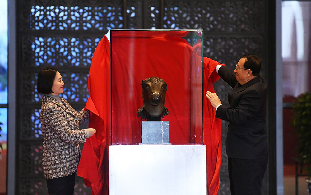 11月13日下午,圆明园马首铜像捐赠仪式在中国国家博物馆正式举行。马首由企业家何鸿燊于今年11月正式捐赠中国国家文物局,捐赠后的马首将划拨北京市圆明园管理处收藏,回归原属地。目前,马首与其他六尊兽首铜像正在国家博物馆展出。