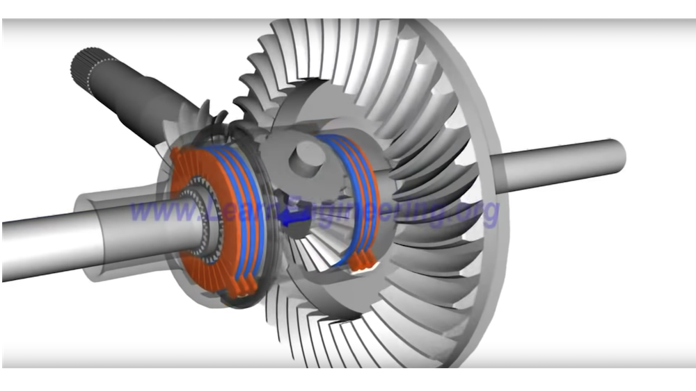 该如何解决这个问题呢?答案是不让两侧车轮彼此独立旋转,或限制两侧车轮的相对运动,这其实就是限滑差速器的设计初衷。