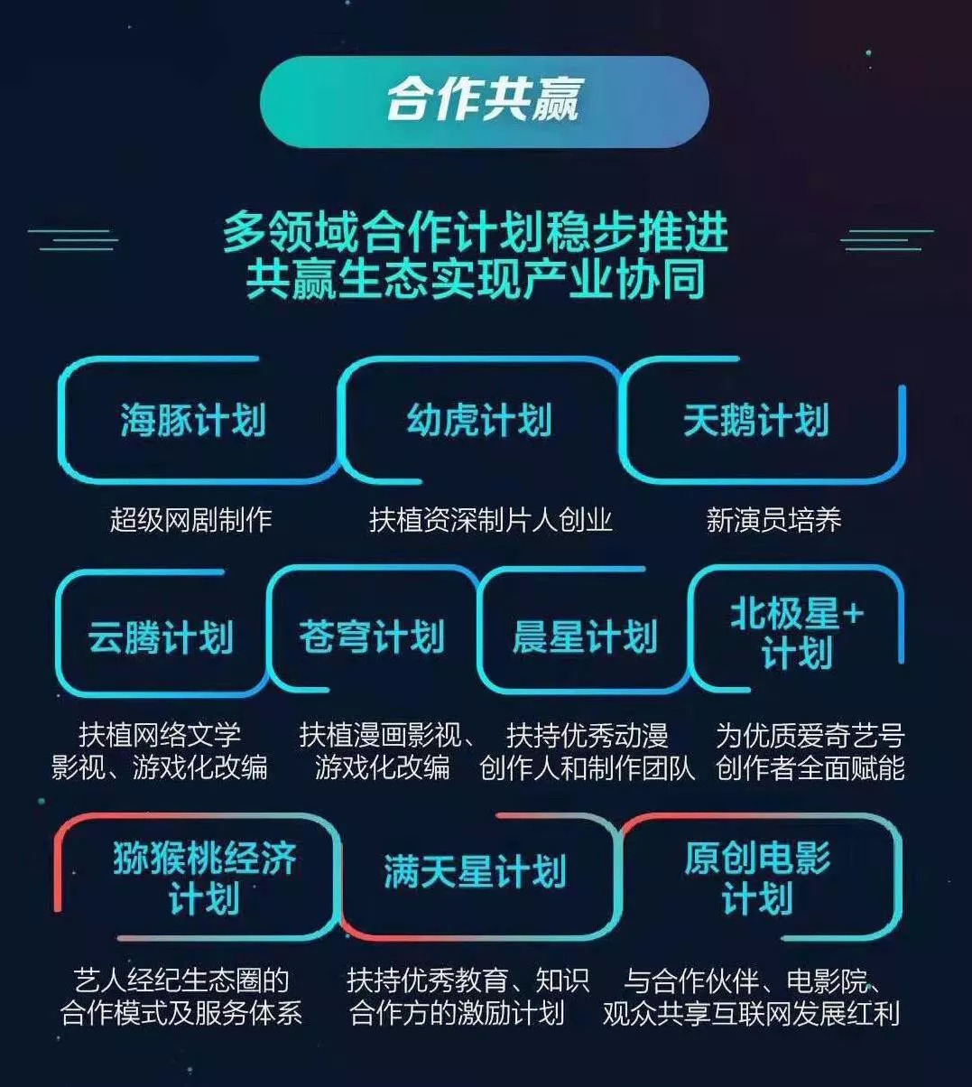 在“云腾计划”中,制作公司可以在爱奇艺文学提供的IP 作品中进行选择,并以分账的形式进行合作。但其体量和规模仍然较小,并未出现在爱奇艺如今公布的片单上。