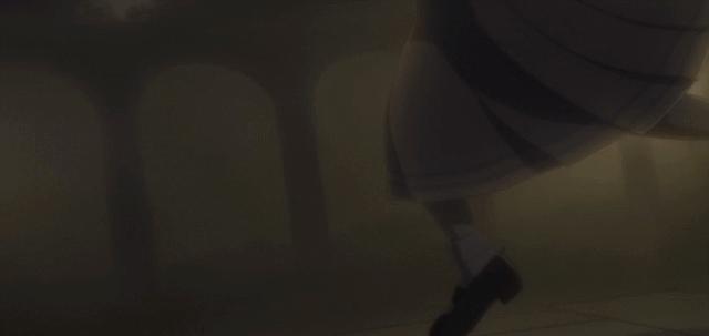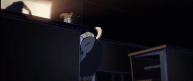 在这段被追杀的剧情中,动画运用了大幅度的连续运镜、以光影效果渲染紧张的氛围、以对比色突出人物等表现手法将羊驼的恐惧、无助与无法反抗的绝望凸显的淋漓尽致,同时也从一开始就像观众揭发了肉食动物与草食动物之间的剧烈矛盾,并不像这所校园表面上所表现的那么平静。