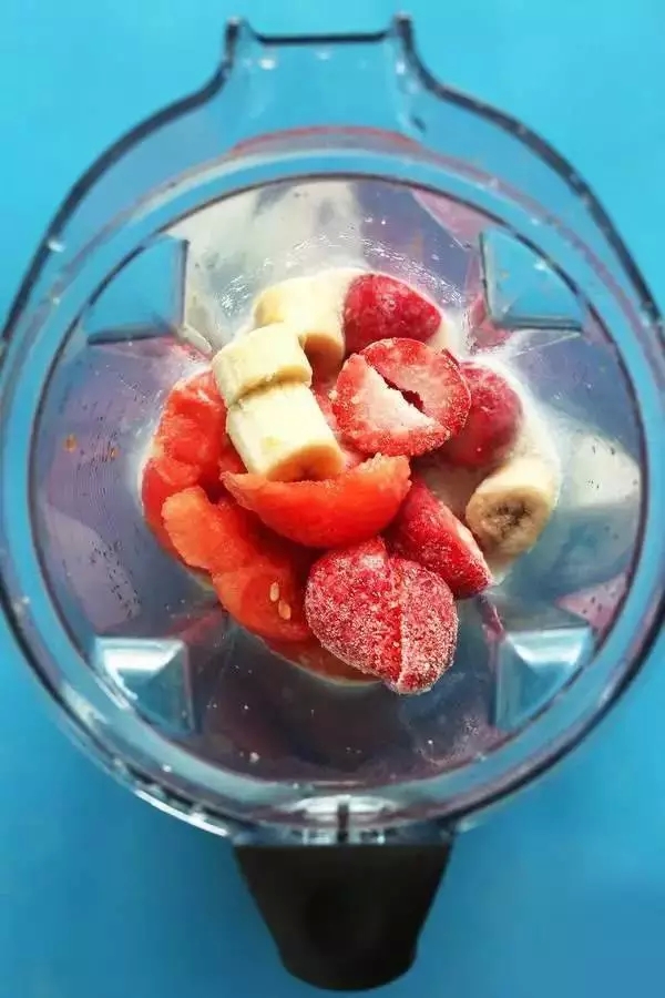 做法:①从罐头捞出果肉冷冻,香蕉连皮一起冷冻;