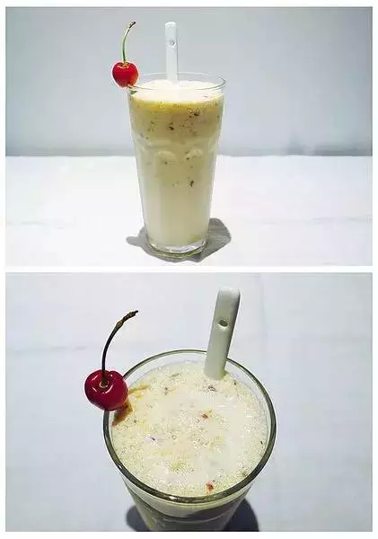 做法:将黄桃、樱桃去核切丁,与冰激凌牛奶一起放入搅拌机打匀即可。饮用前挤上炼乳调味。