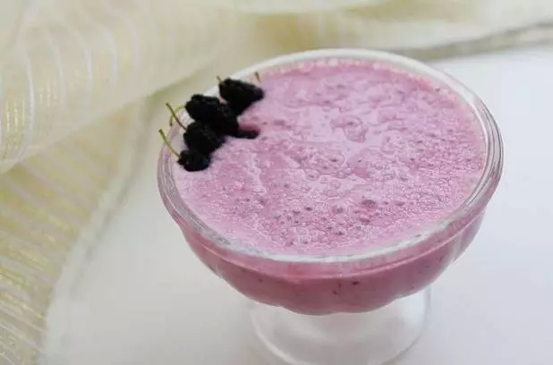 做法:①桑葚洗净沥水、去蒂,放入搅拌机中;②倒入适量酸奶,搅拌10-20秒即可;