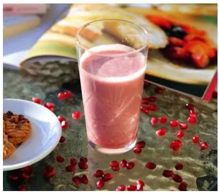 做法:①将石榴籽剥出来;②放入食品搅拌机内打碎;③过滤出石榴汁水;④倒回到搅拌机内,并将梨切成小块也放进搅拌机内;⑤倒入酸奶;⑥放入两片冻香蕉。注:冻香蕉起到浓稠、滑润、冰凉的口感。⑦启动机器,搅拌均匀即可享用。
