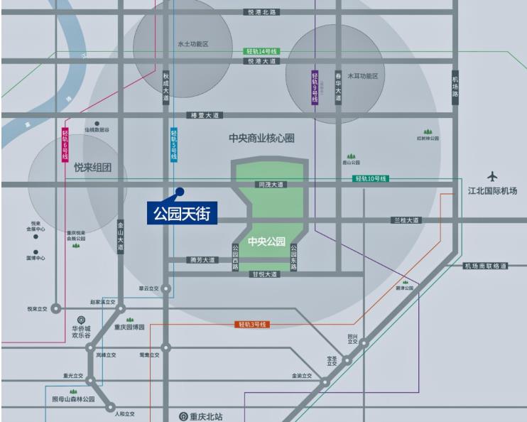 先来看看公园天街的所在C位。作为中国内陆第一个国家级开发开放新区,两江国际商务中心可谓是“集万千宠爱于一身”:�这里与重庆江北机场相毗邻,是重庆与世界的「第一通道」;
