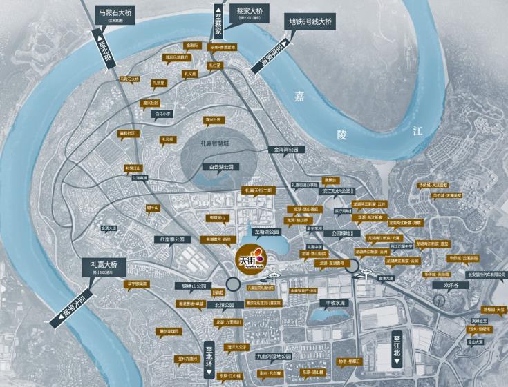 ▲龙湖重庆礼嘉天街项目周边产业分布示意图