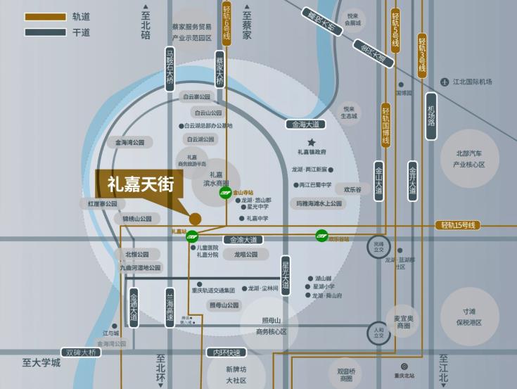 龙湖礼嘉天街所在的礼嘉国际商贸中心,被已建成通车的6号线和6号线支线地铁贯穿,规划的地铁15号线也将在礼嘉区域穿行而过。按照重庆人对商业区域的天然喜好,礼嘉天街交通环境优越,发展潜力非常可观。