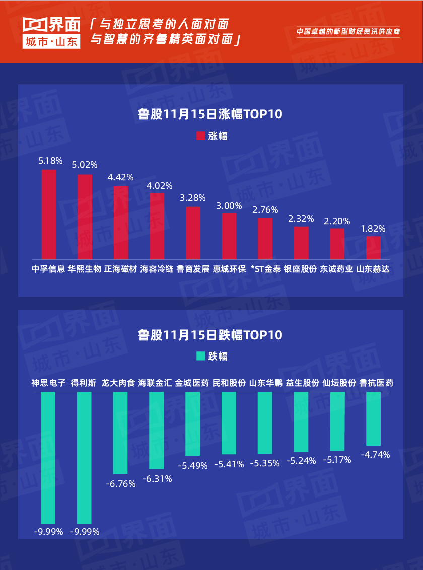 鲁股总结:11月15日35只个股上涨,济南中孚信息领涨全省