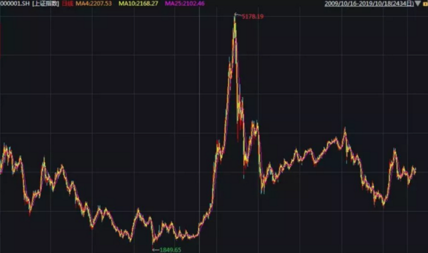 2009年10月16日上证指数收盘点为是2976点,而2019年10月16日上证指数收盘点位是2977点。也就是说,十年时间过去了,上证指数值上涨了一个点。