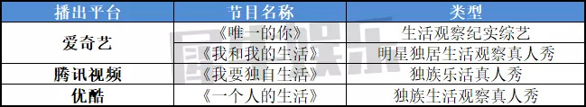 腾讯《我要独自生活》、优酷《一个人的生活》聚焦的也是现代独居潮流,但具体节目模式目前还未公布。