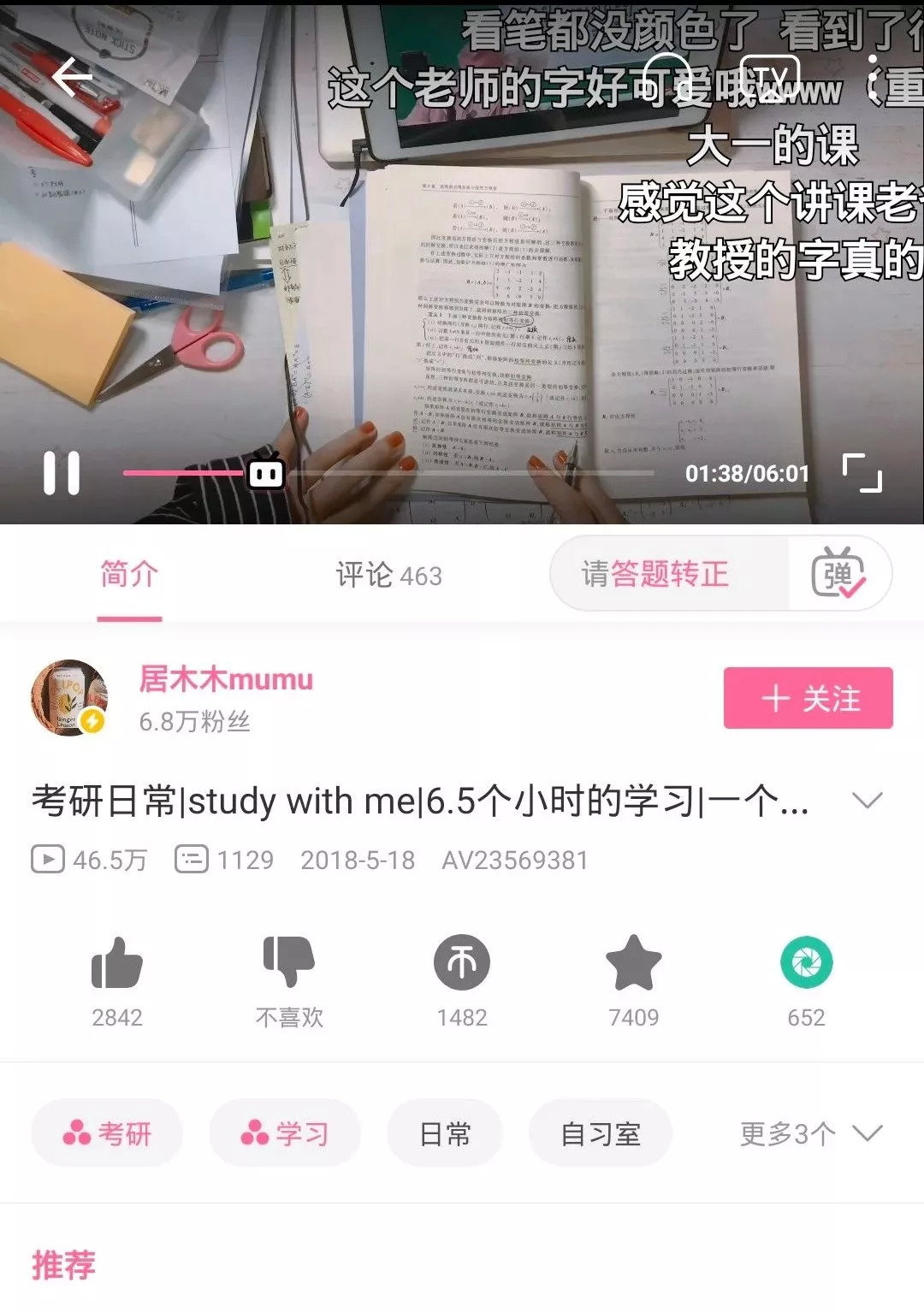 这个up主是“居木木mumu”,这个视频是她上传多个学习视频中的一个,而她也只是B站众多上传学习类Vlog up主中的一个。