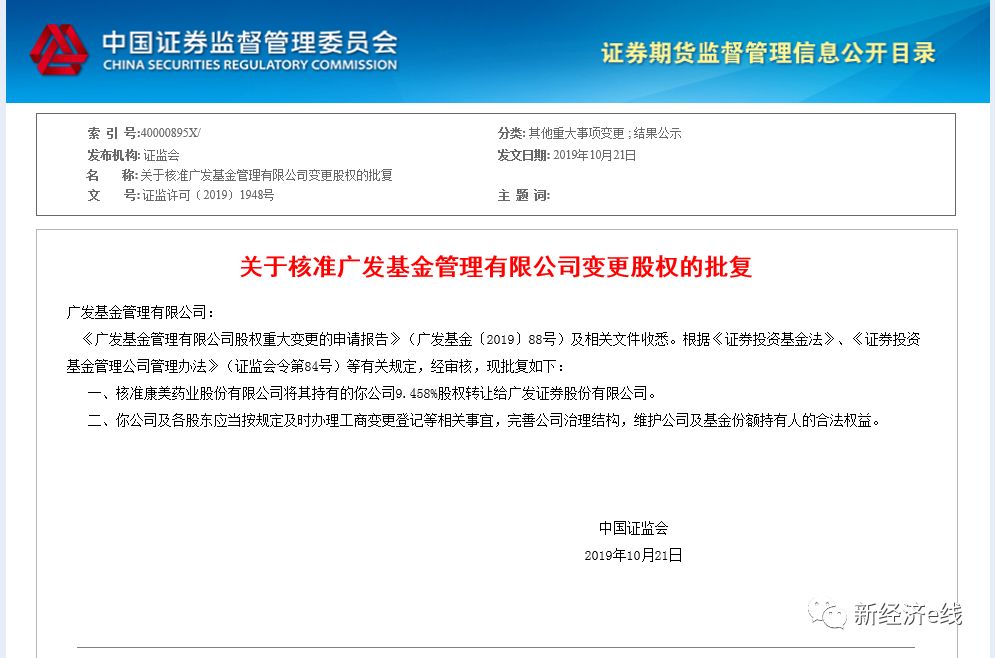 2007年,ST康美出资7656万元受让广发基金1200万股股权(占广发基金总股权的10%)。此后,ST康美持有广发基金的份额一直未变,持股比例略有稀释。此次交易完成后,广发证券持有广发基金的比例将增加至60.59%。