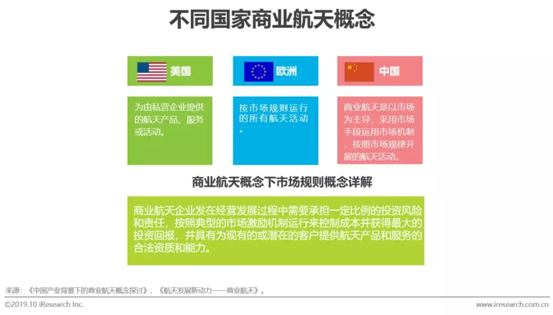 不同国家/地区对商业航天概念定义略有不同,但总体来看,商业航天是指采用市场化机制以获取商业利润为首要目标而开展的航天活动。商业航天除了具有传统航天高风险、高投入、高技术的特点外,还具有经济性、市场驱动性及约束性的特点。
