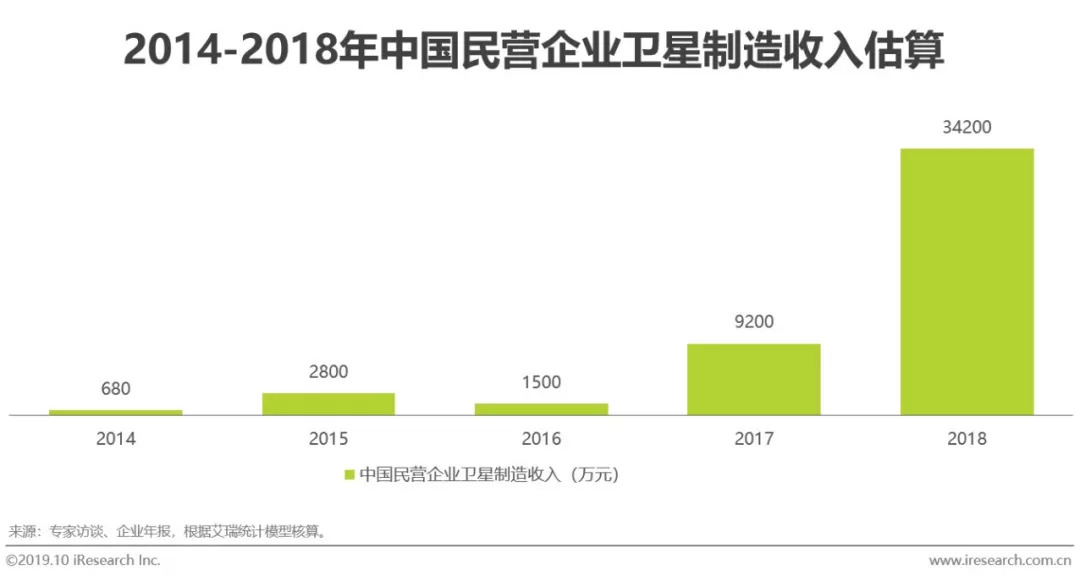 中国民营机构卫星制造收入在2018年迎来爆发式增长