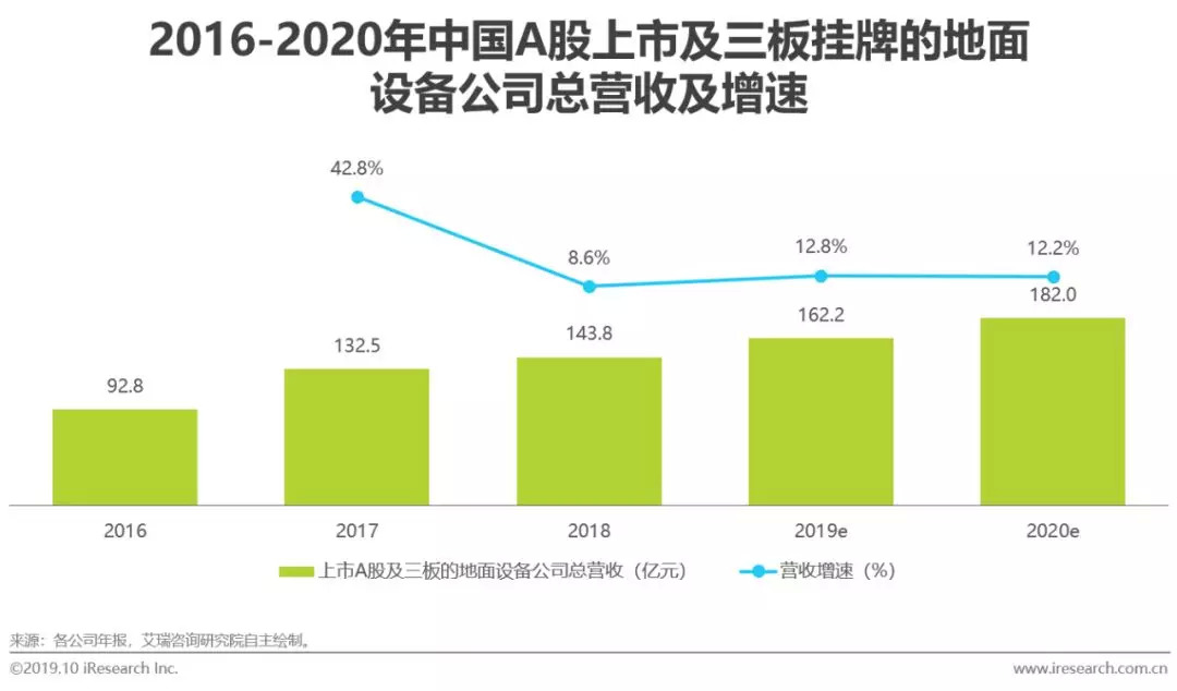 卫星地面设备是指卫星产业链条中地面端所需要应用的产品,卫星地面设备是卫星产业链实现商业落地的关键。卫星地面设备包括网络设备和消费终端。通过研究上市A股的卫星地面设备公司,发现多数卫星地面设备公司同时经营卫星网络端业务和消费终端业务。因此,卫星地面设备产业规模的核算难以将二者在产值规模上做明确区分。艾瑞预计,随着北斗导航卫星、高分专项遥感卫星等卫星星座建设阶段接近结束,卫星应用阶段将全面开启,卫星地面设备将迎来消费端设备的增长期。预计未来2年内,卫星地面设备分别以12.8%和12.2%的年增长速度增长。