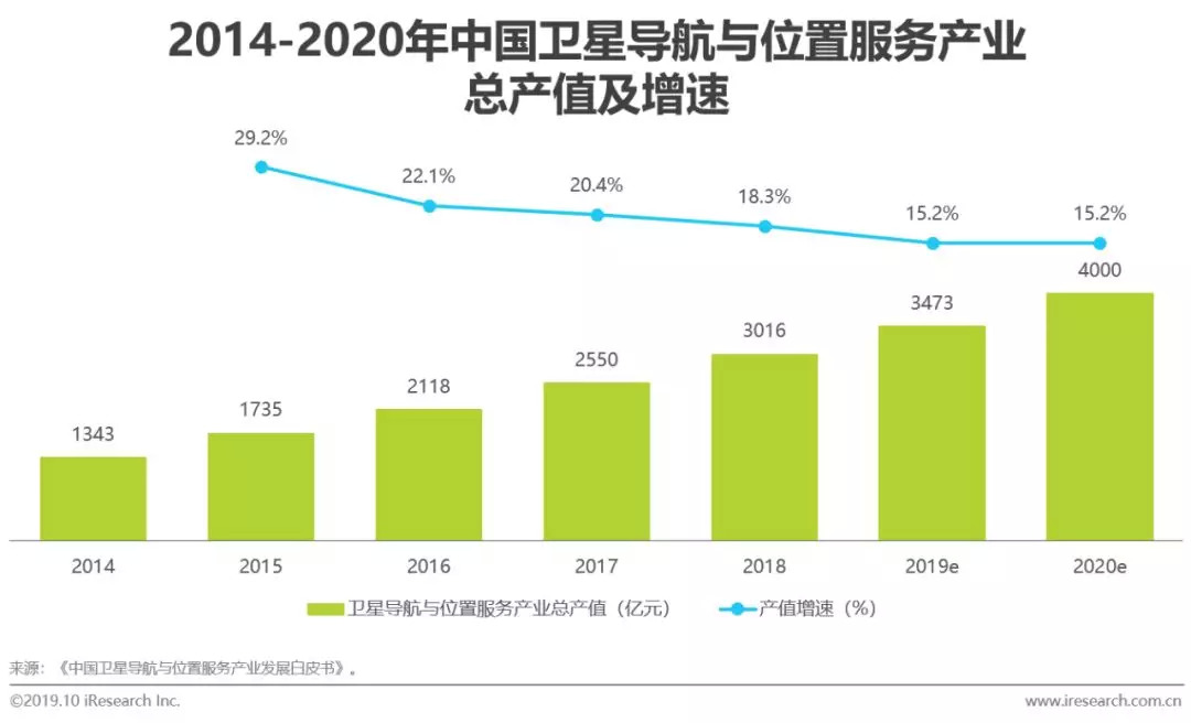 根据2019年中国卫星导航定位协会发布的《中国卫星导航与位置服务产业发展白皮书》,我国2018年卫星导航与位置服务产业总产值达到3016亿元,2014年至2018年期间,我国卫星导航与位置服务产业总产值的年复合增长率为17.56%,根据2013年国务院办公厅发布的《国家卫星导航产业中长期发展规划》,我国将卫星导航产业规模在2020年超过4000亿元设定为发展目标。为完成该目标,保守预计未来两年年复合增长率为15.16%。
