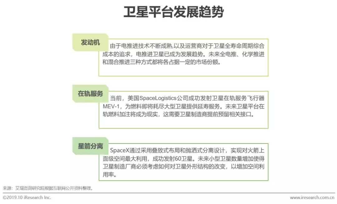 由于低轨星座和大型高轨卫星均存在各自适合的应用场景以及诸多传统卫星运营商对低轨星座商业价值依然持怀疑态度,未来五年内低轨移动星座无法取代高轨大型卫星的地位。接下来将从平台和载荷两个方面分析卫星制造变化趋势。