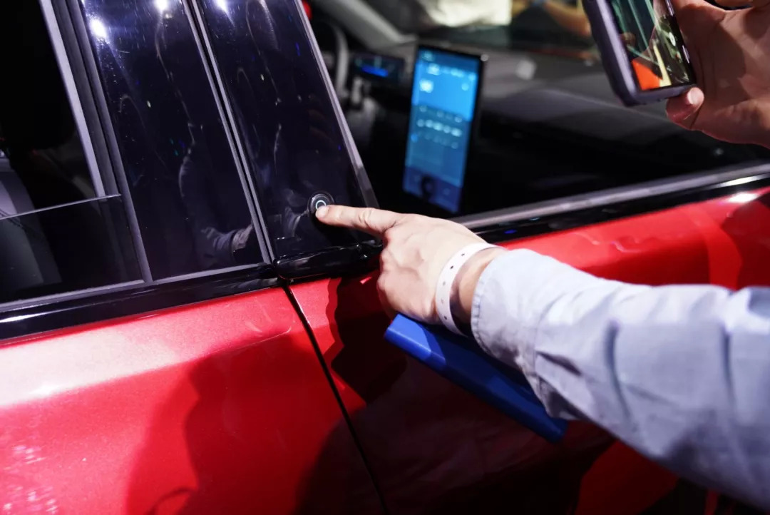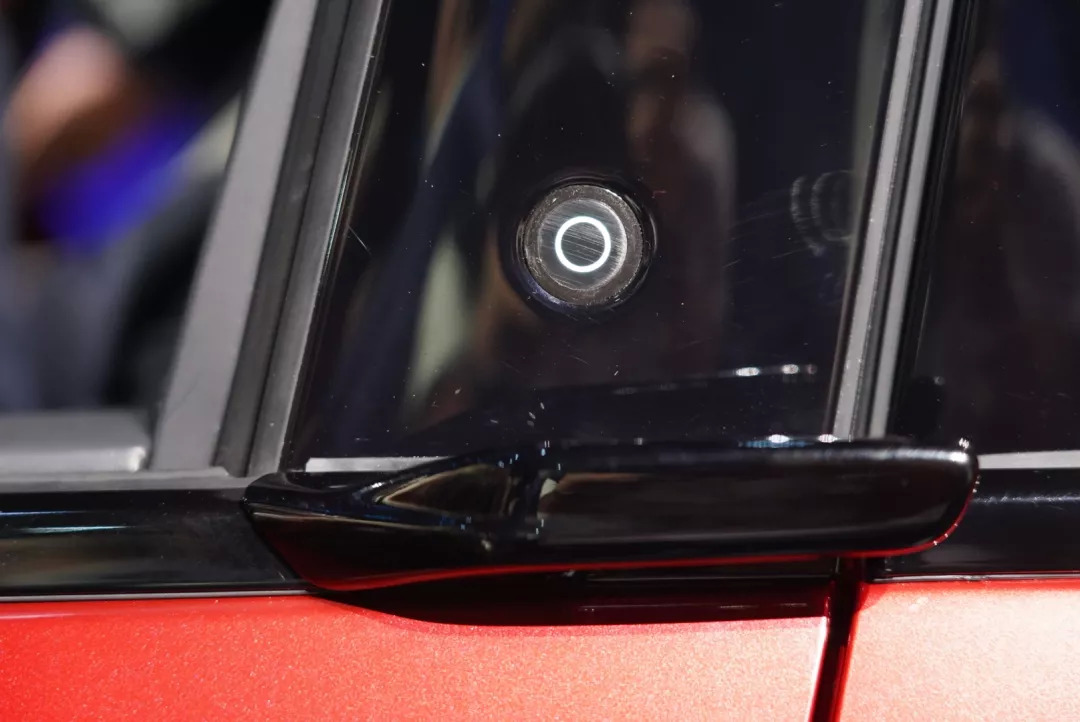 另一个设计的亮点是这款电动SUV完全没有门把手的设计,这样可以把风阻系数降低到0.3Cd以下,对于电动SUV来说非常难得。而这也让Mach-E成为全球首款完全取消了门把手的汽车产品,开门是通过B柱和C柱上的按键,车门会自动弹开,然后前门会有一个小的拉手,后门则完全通过门框拉开。