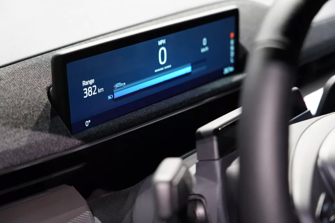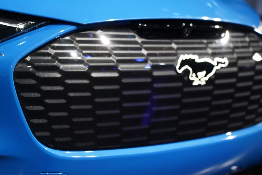 整个车身前后都没有看到Ford的Logo,而是采用了Mustang车型上的“野马”标识。这个标识是纯平的设计,但是利用横线条纹来展示小马奔跑的速度感,这也是电动车上独一无二的设计。