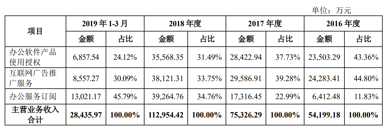 作为国产软件的龙头企业,金山办公申报上市时就受到广泛关注,此前也做过分析。金山办公的主要产品为WPS Office,截至2019年3月,WPS产品月度活跃用户总数已超过3.1亿,