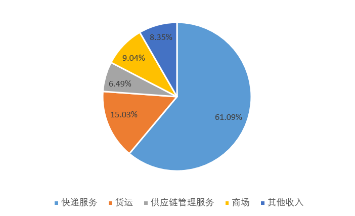 客观上来说,将百世集团与顺丰以及三通一达相比,有些“不公平”。从公司的产品收入结构中也可以看到,快递服务收入仅占据营业收入的61.09%。除此之外公司所开展的货运业务、供应链业务、商场店加等业务贡献收入分别占比15.03%、6.49%、9.04%。