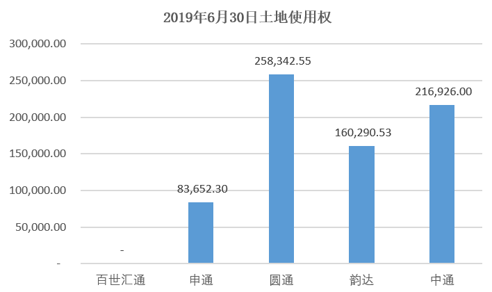 而百世集团“独有”的加盟制,采取了更轻的商业模式。采取加盟模式的几家快递巨头中,只有百世汇通采取不购买土地的方式。据Wind数据统计,截至2019年上半年,仅百世集团一家披露的土地使用权科目金额系零。从金额上,即使是土地使用权最少的韵达,一年摊销金额也高达0.73亿元。