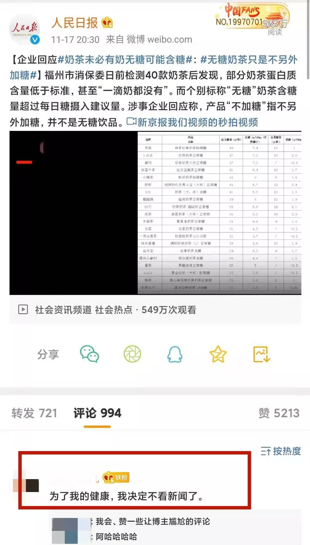 消费者也都免疫了,微博上点赞最高的评论是这么说的:“为了自己的健康,我决定不看新闻了。”