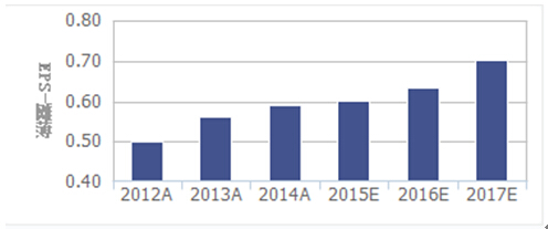 其实,采用最简单的算法,2015年半年每股收益为0.31元,全年测算大约在0.6元上下。